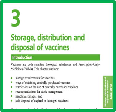 Practitioners are responsible for ensuring that best practice is followed for ordering, storing, distributing and disposing of vaccines, in all settings; see the Green Book chapter 3 for the full guidance that should be followed.